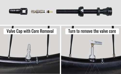 Tubeless-Ventil. Dies erleichtert das Aufpumpen der Reifen enorm.